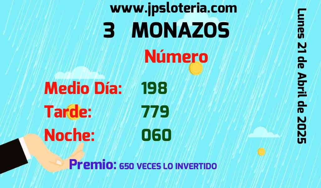 Resultados de 3 Monazos del Lunes 21 de Abril de 2025
